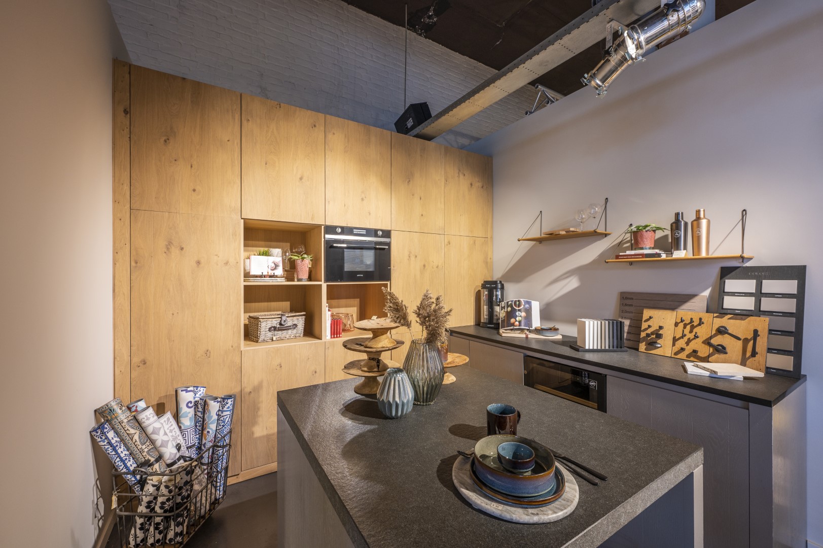 Met zijn groot team van plaatsers en ontwerpers kan Wonenmetidee de volledige keukenruimte aanpakken, van ruwbouwwerken tot afwerk. Deze keuken is als toonzaalkoopje te koop. Vernoemde prijzen zijn exclusief BTW en plaatsing