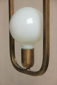 The lamp Brooklyn is a hand made, brass floor lamp in 'miel' colour with an antique finish.
